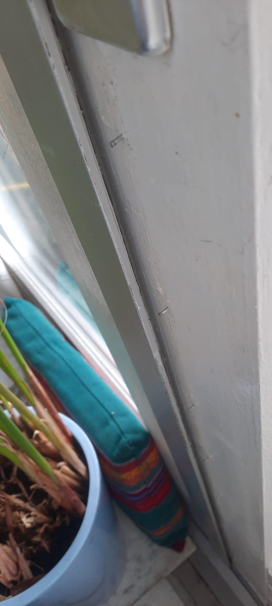 Hij hangt er stevig bij en dat red je niet met 2 spijkers. De wind krijgt er grip op, nu met deze tape niet.