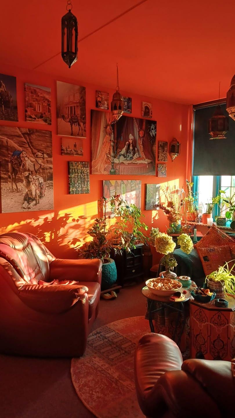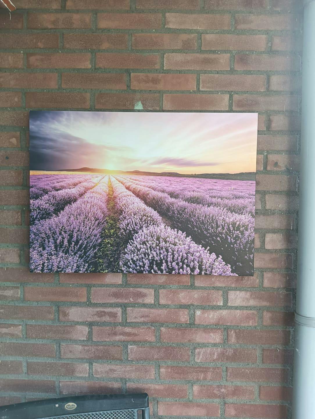 Ik heb onlangs dit tuinschilderij buiten op mijn balkon gehangen.
